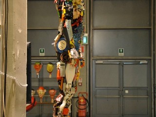 Un lavoro certosino di recupero, di catalogazione per oggetti, funzioni, forma, colori, materiali per poi farli rivivere, riciclati, in opere d’arte. Così nascono le sculture di questi due giovani Artisti che, ad un primo sguardo, possono sembrare geniali e fantasiose sculture dai colori accesi, ingegnosi e gioiosi giocattoli per adulti, singolari opere realizzate come in una composizione del famoso gioco del LEGO. Realizzate con i codici della nostra epoca, sono esse stesse testimonianza e denuncia, rimandandoci l’immagine della nostra civiltà: siamo ciò che consumiamo, da mattina a sera ogni nostro bisogno è accompagnato da un involucro, una confezione, cibi e oggetti che, una volta che ci hanno soddisfatti, vogliamo buttare e negare. Sculture composte da cose: osservandole, ognuno di noi, può riconoscere un oggetto o parte di esso che nella sua vita ha posseduto o usato.