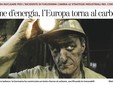 Poi casualmente, sempre casualmente e solo casualmente, la stampella offre a supporto nientemeno che una "bella" prima pagina addirittura nazionale, con una foto che trasuda progresso e benessere: il viso di un minatore, sporco sudato e con gli occhi di chi non sa se vivrà domani sotto un opportuno titolo: "Fame d'energia, l'Europa torna al carbone"