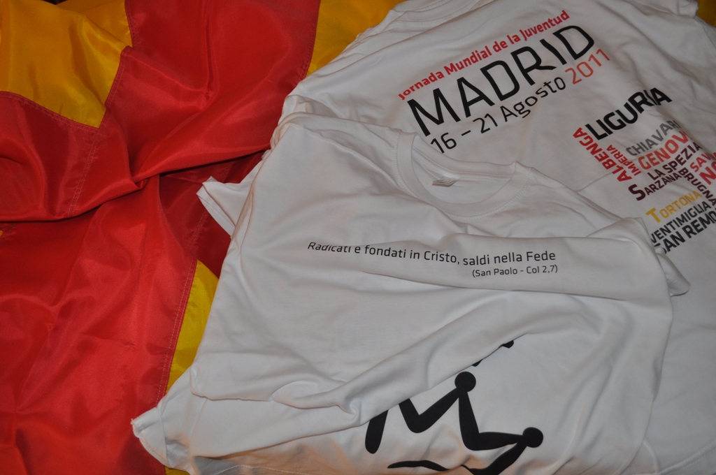 "Radicati e fondati in Cristo, saldi nella fede" è il motto stampato sulla maglietta indossata da ognuno dei partecipanti ingauni. Colazione frugale con merendina, aranciata e latte e cioccolata. Così inizia la giornata tipo, per continuare poi con pranzo e cena da consumare con buoni pasto da 6.50 euro in locali convenzionati. Nella mattinata catechesi e Messa al Pinto, nel pomeriggio visita a Madrid, dove la capitale si ricoprirà di tricolore per la "giornata degli Italiani".