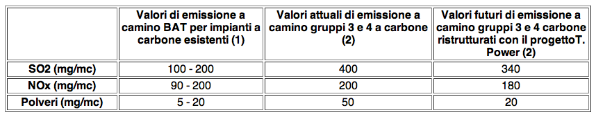 3 - gli obsoleti gruppi a carbone 3 e 4 non rispettano né potranno mai rispettare i limiti di emissione a camino imposti dalle (Bref) della Ue (vedi tabella qui sotto riportata)