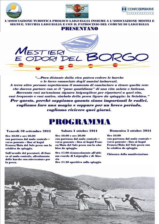Questo antico mestiere è stato vitale per moltissimi anni ed ha contribuito in maniera determinante al buon funzionamento dell’economia locale. In particolare la sciabica è il simbolo della pesca ligure da spiaggia. Di essa possediamo raffigurazioni a partire dal Sei - Settecento e descrizioni a partire dalla seconda metà del ‘400. In tempi passati Laigueglia contava 36 famiglie di Patroni di reti da sciabica.