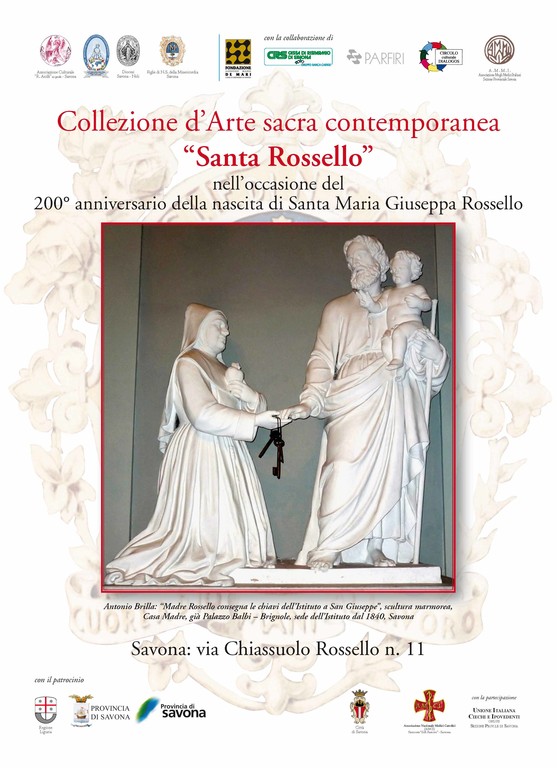 Da giovedì 6 ottobre 2011 riaprirà definitivamente la Collezione d'Arte Sacra Contemporanea dedicata a Santa Maria Giuseppa Rossello a cura dei volontari dell'Associazione Renzo Aiolfi, col seguente orario: dalle 16 alle 18, in Vico Rossello 11 a Savona (in centro Città dietro la Chiesa di San Domenico). In mostra è presente il catalogo, anche in versione Braille per i non vedenti.