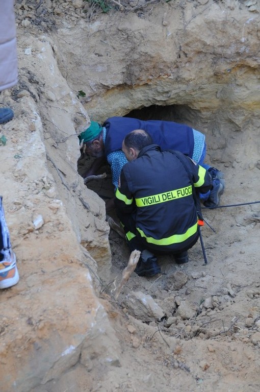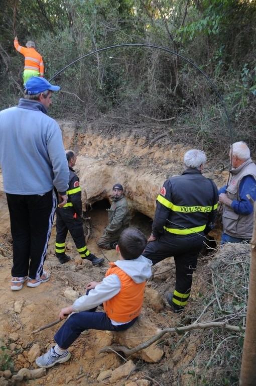 Salvato il cane intrappolato in una buca a Campochiesa d'Albenga (foto)