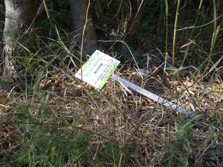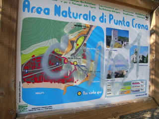 Purtroppo gli ultimi interventi effettuati sul sentiero che porta in cima al promontorio sono sotto attacco da parte di vandali e bisogna segnalare la distruzione di quasi tutti i cartelli indicanti le varie specie vegetali , la rottura di punti luce, ecc.(foto).