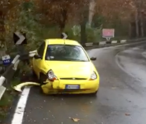 Incidente sul Cadibona: macchina scivola sull'asfalto e finisce contro il guard rail