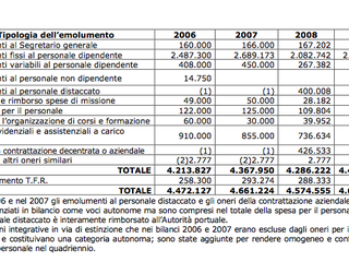 "L’incarico dell’attuale Segretario generale è stato rinnovato nel 2008 per ulteriori quattro anni con il medesimo trattamento economico e normativo previsto dal precedente contratto, ammontante ad euro 160.000 annui lordi."