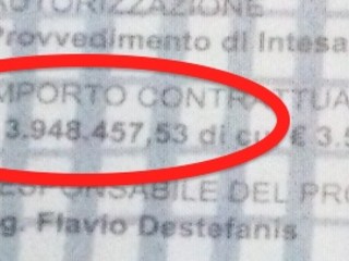 La curiosità va però al cartello di appalto: come mai dei quasi 8 milioni di Euro ne vengono indicati "a preventivo", sul cartello di appalto quasi illeggibile ne compaiono circa la metà?