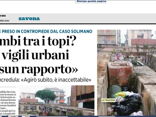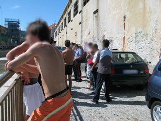 Cantieri Solimano. 25 luglio. Un piccolo furto seguito da alcune minacce a danno di bagnanti fa accorrere almeno tre corpi di polizia. Eravamo sul posto. E fu proprio un agente donna della Polizia Municipale di Savona ad entrare in quel piccolo inferno divenuto rifugio per stranieri. Guanti neri, capelli biondi raccolti sotto il berretto d'ordinanza, modi garbatissimi. Certamente la Municipale non ha bisogno della nostra difesa, ma è difficile pensare che