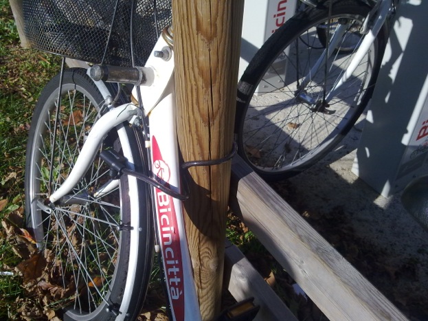 Ma a giudicare dalle foto inviateci da un nostro affezionato lettore alcuni "cittadini" di questa zona di Savona non la pensano esattamente a questo modo. Ed ecco che ci troviamo di fronte ad una scena francamente ridicola: un mezzo del servizio bike sharing che invece di essere riposizionata dopo l'uso al proprio posto, viene assicurata con un lucchetto alla staccionata accanto, come fosse la propria.