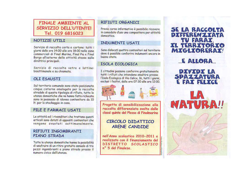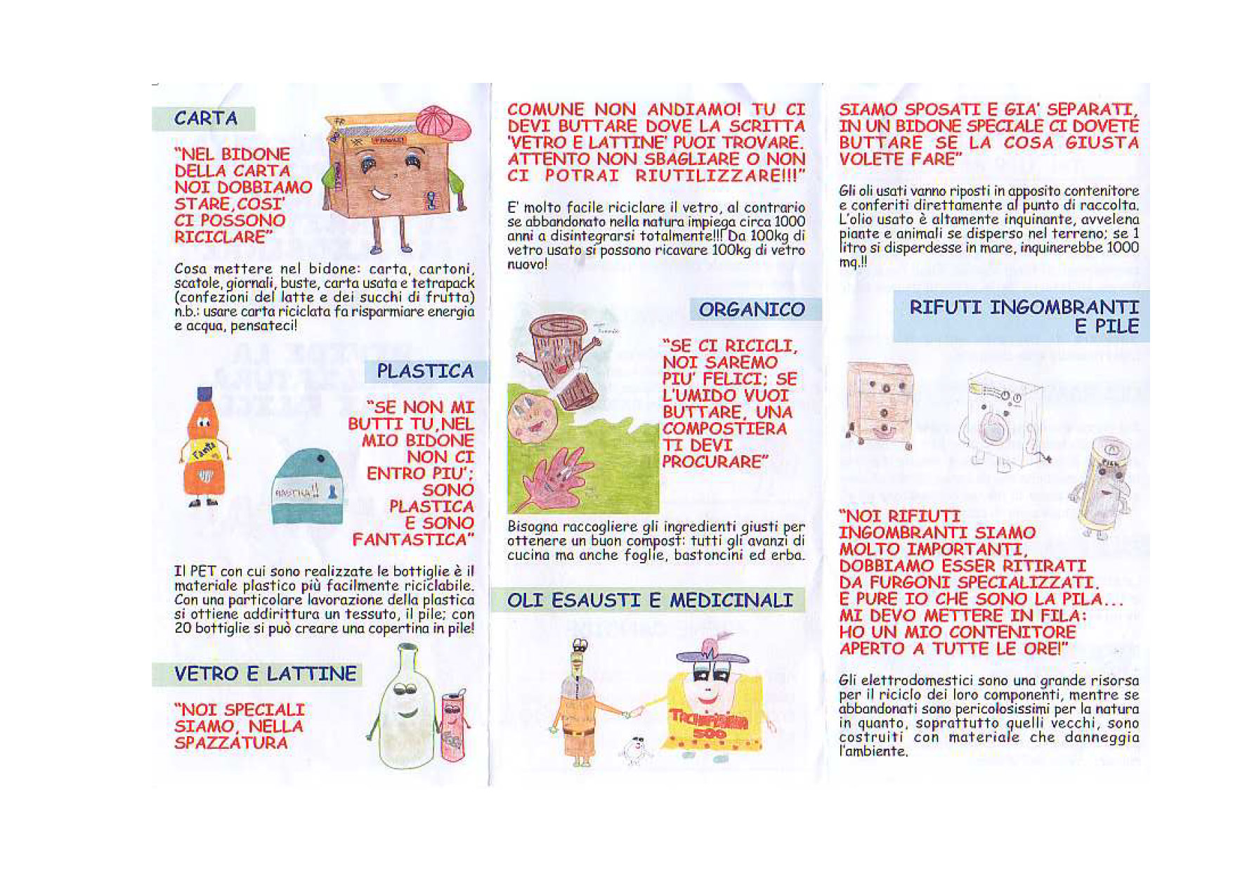 Un pieghevole (v. foto) stampato a spese del Distretto Scolastico, è ora in via di distribuzione nelle Scuole dei Rioni dove sarà avviato il nuovo sistema di raccolta differenziata “porta a porta”.