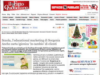 La realizzazione del progetto di ‘educational marketing’ che trasforma i ragazzi in “reporter ambientali” è affidato alla società Ellesse Edu, che nel suo sito internet pubblica anche un codice deontologico. “Esclusa qualunque azione che possa essere ricondotta a meri interessi commerciali”, assicurano. Ma gli studenti ricevono anche le cartoline che promuovono l’offerta ‘Sorgenia per la scuola’ per i nuovi clienti. “L’offerta è ricordata anche in fondo al fascicoletto consegnato agli alunni”, racconta Isabella Mapelli, che il 24 novembre ha accompagnato una classe della scuola media Buzzati di Milano all’evento di presentazione organizzato da Sorgenia. “Un progetto fatto con discrezione”, sostiene l’insegnante, che assicura: “Ormai nelle scuole riceviamo proposte decisamente più sfacciate”. Del resto, fa notare un articolo di Repubblica, il quotidiano che in comune con Sorgenia ha i proprietari, l’idea rivolta alle scuole è piaciuta anche al ministero dell’Istruzione, che ha dato il suo “supporto”.