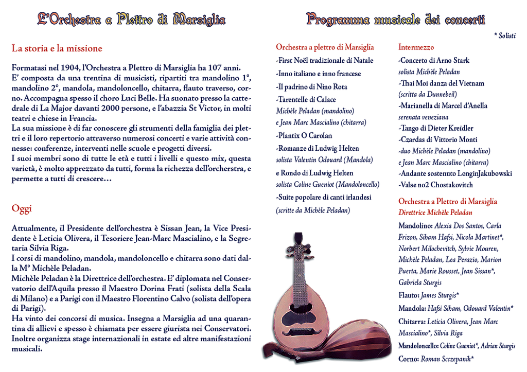 Si esibirà l' Orchestre à plectre de Marseille in gemellaggio con il Circolo Mandolinistico "G. Verdi" di Savona.