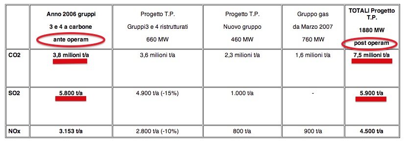 RISULTA PRIVA DI FONDAMENTO LA DICHIARAZIONE CHE CON IL POTENZIAMENTO DIMINUIRA’ DEL 70% L’INQUINAMENTO CHE INVECE AUMENTERA’ NOTEVOLMENTE COME SI RICAVA DALLA SEGUENTE TABELLA.