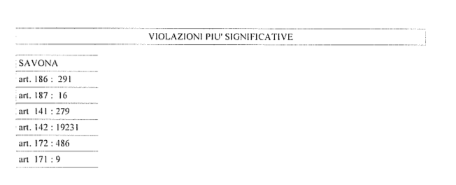 violazioni, di cui nr. 2.111 su Savona e cui si riporta di seguito un breve