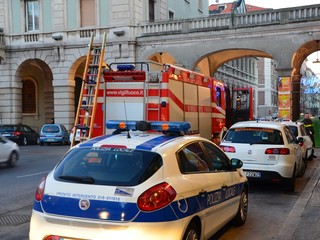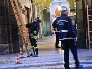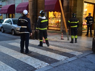 Intervento nel pomeriggio in Piazza Mameli dove alcuni calcinacci sono precipitati lungo il marciapiedi