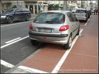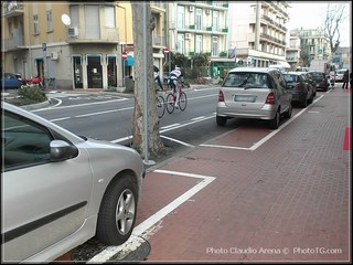 Insomma, siamo in Corso Ferrari ad Albisola Superiore, nelle vicinanze del ponte confinante con Albissola Marina; qui senza tanto dannarsi, si possono ben vedere le nuove delimitazioni che il comune ha riservato agli automobilisti.