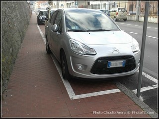 Parcheggi, che sono a metà tra l’asfalto e il passaggio pedonale.