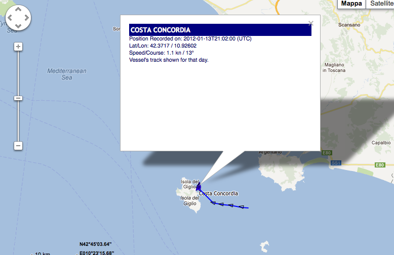 'Quella roccia non era segnalata sulla carta, non c'era, non doveva esserci''. Il comandante Francesco Schettino ripete il ritornello come un bambino che ha imparato la poesia a memoria: ai soccorritori che l'hanno salvato su una roccia dell'isola del Giglio a due passi dal porto, agli investigatori che da questa mattina stanno cercando di capire come e perche' la 'Concordia' della Costa Crociere, sia finita contro uno scoglio a meno di duecento metri dalla riva. In un punto dove non avrebbe dovuto essere...