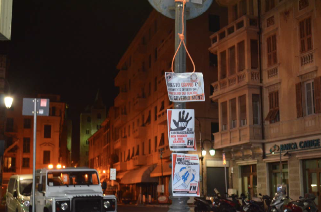 La Federazione Forza Nuova di Savona, si è impegnata in questa notte ad affiggere i cappi nella città di Albenga, Ceriale e Alassio.