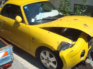 Veicoli fuori uso parcheggiati a lato della strada senza alcuna cura delle conseguenze.