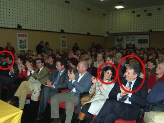 Tra il pubblico a spellarsi le mani un felice Riggeri accanto ad un'ilare Sorgini con stivali da cavallerizza bolscevica (mah...) Nella penombta, a guardar bene, troviamo anche il Miceli nel terzo cerchiolino rosso per caso...