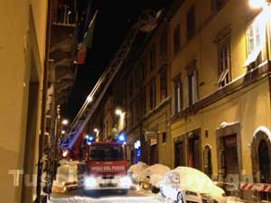 Tetto distrutto e appartamenti del secondo piano completamente bruciati. palazzina inagibile