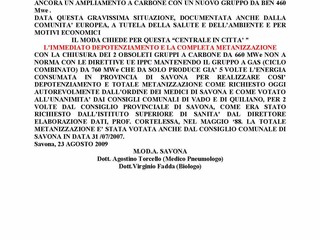 Ribadiamo quindi ancora quanto già da anni richiesto urgentemente dalla commissione scientifica di spotorno e più di recente dall’ordine dei medici della provincia di savona nonchè da molte associazioni e comitati del territorio depotenziamento e completa metanizzazione questa centrale in città".