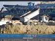 Nel pomeriggio, poi, parte il viavai di camion carichi di inerti - di provenienza altrettanto ignota - che attraverso il cancello automatico della Eurocraft, percorrono il “pennello” in tutta la sua lunghezza (la larghezza è ormai quella di un paio di corsie di marcia) per portarsi in retromarcia nei pressi dell’estremità e scaricare a mare interi cassoni di tonnellate di inerti composti da rocce e terriccio, per quel che si può osservare ad un paio di centinaia di metri di distanza.