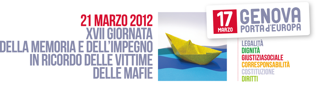 LIBERA sottolinea anche la significativa istituzione, da parte della legge, in Liguria, della “Giornata regionale dell’impegno contro le mafie e in ricordo delle vittime” che si celebrerà ogni anno il 21 marzo, primo giorno di primavera, simbolo di rinascita e di speranza; e la vicinanza, decisamente voluta, di date tra l’approvazione della legge e la presentazione, avvenuta ieri, in Prefettura della “XVII Giornata Nazionale della Memoria e dell’Impegno in ricordo delle vittime delle mafie”. Sabato 17 Marzo, a Genova, LIBERA celebra la diciassettesima giornata della memoria e dell'impegno per dare un segno forte di affetto e di partecipazione ai familiari delle vittime innocenti della criminalità organizzata: sarà una giornata in grado di sintetizzare mesi di sensibilizzazione condotta a contatto quotidiano con gli esponenti più attenti delle istituzioni, con le scuole, le università, i sindacati, il mondo delle associazioni, gruppi parrocchiali, le professioni e quegli imprenditori fortemente impegnati in Confindustria per un rinnovato patto di legalità. Essere in tanti a Genova per rinnovare tutti insieme l'appello affinché il Parlamento italiano riconosca il 21 marzo come giornata nazionale in ricordo delle vittime di mafia.
