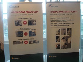 Sempre aggiornati gli avvisi a bordo treno, nelle apposite bacheche, con la data di esecuzione dell’ultimo intervento di qualità, il luogo dove sono avvenute le operazioni e la specifica delle attività specialistiche svolte (lavaggio accurato di pavimenti, toilette, finestrini, sedili e azioni approfondite di pulizia di componenti particolari della carrozza, disinfezione e sanificazione dell’intera carrozza). In questo modo ogni viaggiatore potrà “controllare” la frequenza e il tipo di attività svolte.