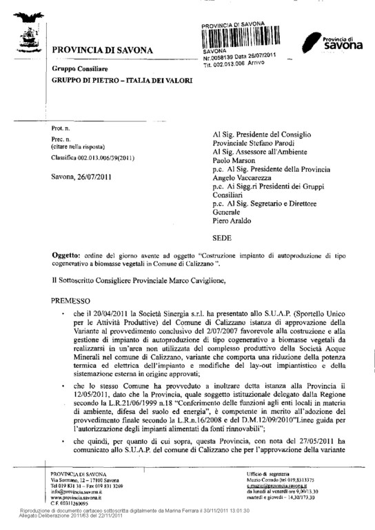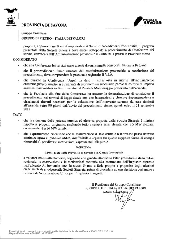 A proposito di questa assurda e orrenda centrale di Ferrania viene inoltre da domandarsi: cosa mai sarà servito l’odg approvato all’unanimità in Provincia, partorito a seguito del mio, bocciato, sulla centrale di Calizzano? La risposta è sin troppo facile..."