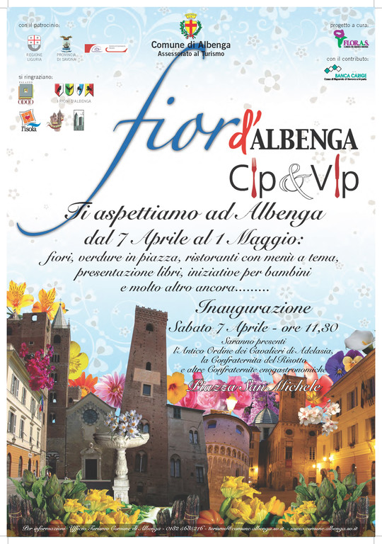 Ancora una volta, la Città di Albenga si prepara ad essere invasa - da sabato 7 aprile a domenica 1 maggio - dai fiori, dai sapori tipici e dalle tradizioni, accompagnati da numerosissimi eventi collaterali.