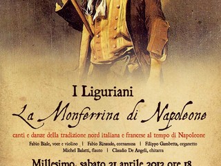 I Liguriani durante il concerto proporranno alcuni canti francesi molto famosi come “La Carmagnola”, inno dei rivoluzionari, insieme ad importanti ballate nord italiane come “La Monferrina di Napoleone”, che da il nome allo spettacolo, “La Monaco” e la “Ballata del Draghin”.