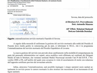 "Oggetto: esternalizzazione servizio mortuario Ospedale di Savona