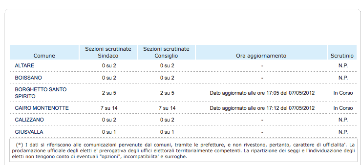 Risultati elettorali: in tilt il sito della Prefettura di Savona