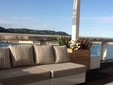 Un portico coperto e un terrazzo in teak di 400 metri quadri completano la struttura, offrendo agli ospiti un panorama unico sul mare e sulla città.
