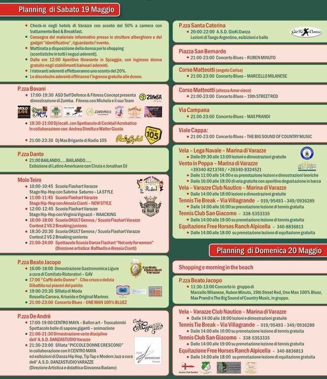 La manifestazione che ormai dal lontano 1992 contraddistingue la città con un marchio unico e riconosciuto a livello nazionale ed internazionale, torna quest’anno, per il week-end del 19 e 20 maggio, ad ospitare centinaia di donne da tutta Italia, e a coccolarle, con pernottamenti e ingressi in spiaggia gratuiti, cocktail di benvenuto, sfilate di moda, dibattiti, concerti, discoteche aperte, corsi di cucina, divertimento e relax in tutta la città, per un fine settimana tutto dedicato all’universo femminile, alla moda, al gusto e al buon gusto.