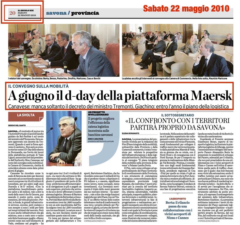 alla quale il Merli rispondeva testuale «Sì. Parliamo di un incontro recente, circa 30 giorni fa, insieme al viceministro dei Trasporti Mario Ciaccia, al presidente della Regione Liguria Claudio Burlando e al presidente del porto di Savona, Rino Canavese. In quel contesto abbiamo spiegato le motivazioni del progetto-Vado, ottenendo un impegno scritto perché il governo sostenga l’opera».