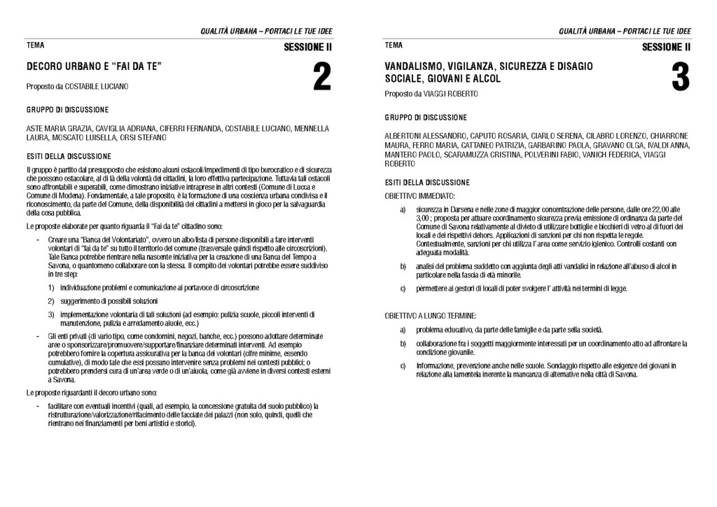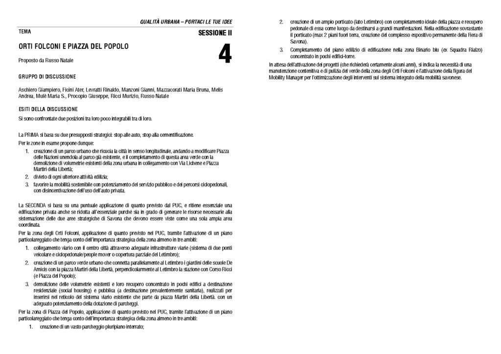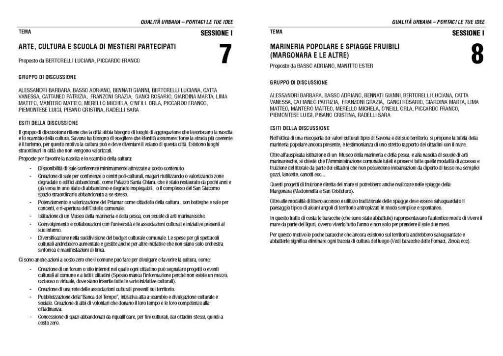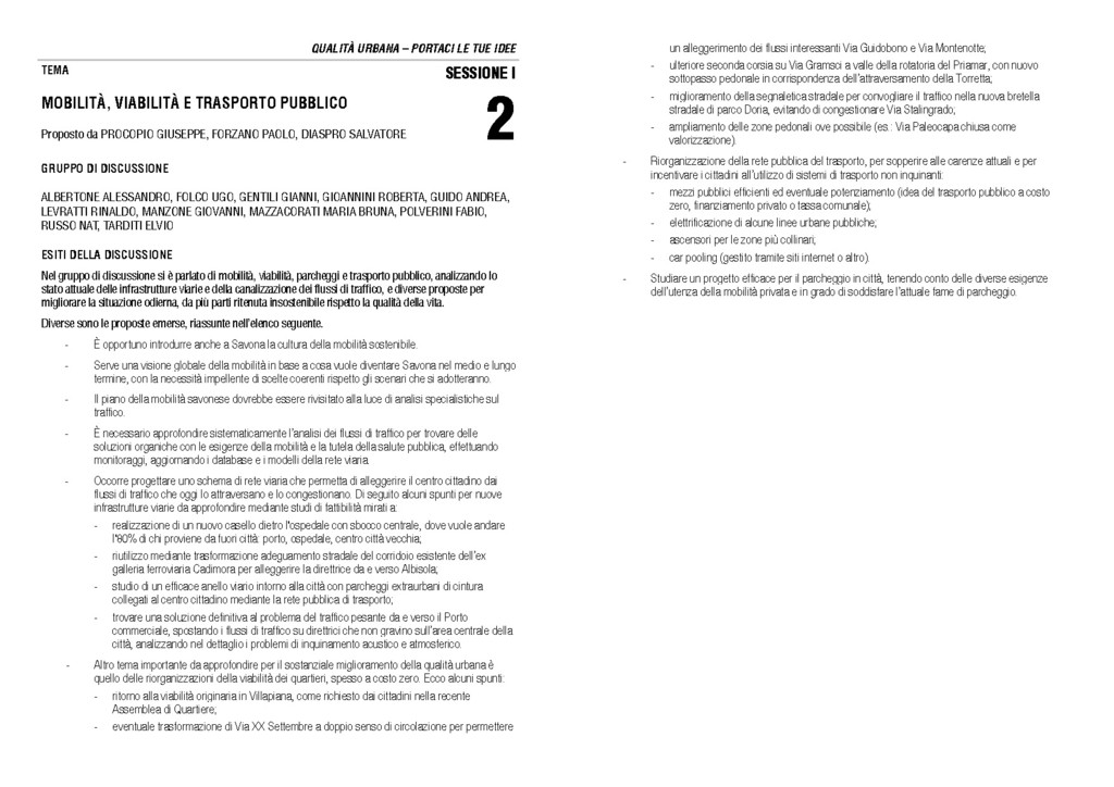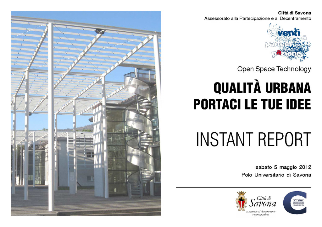 Sabato 9 giugno 2012 alle ore 10 nella Sala Rossa del Palazzo Civico di Savona si terrà il Forum sulla Qualità Urbana durante il quale verranno esaminate le tematiche discusse durante l’Open Space Technology dello scorso 5 maggio.