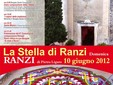 La composizione del caratteristico tappeto floreale, di forma circolare e del diametro di circa 7 metri, inizierà alle 9 del mattino nella piazzetta antistante la Cappella della Santa Concezione. I maestri infioratori del Circolo Giovane Ranzi tracceranno su uno strato di terra battuta il disegno scelto per l’edizione 2012. Sulla base di questo disegno sarà costruita a mano, dal centro verso l’esterno, la “Stella”. Le linee tracciate saranno coperte di fiori e gli spazi riempiti di petali, fino ad ottenere un mosaico dai colori sgargianti. Un lavoro lungo, minuzioso, che gli abitanti del paese eseguiranno nell’arco dell’intera giornata.