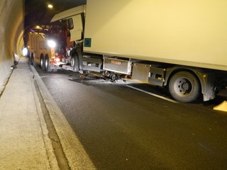 A10 chiusa tra Pietra Ligure e Savona a causa di un incidente tra due TIR - (Le foto). Avvenuto intorno all'ora di pranzo all'interno della galleria Fornaci, nel tratto tra Spotorno e Savona. L'autista di un tir incastrato tra le lamiere all'interno del tunnel Fornaci, 1669 metri senza corsia di emergenza, senza una piazzuola, senza un idrante (foto e video)