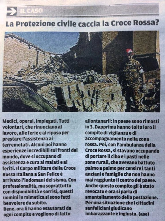Dicevo che il terremoto è una cosa seria, quindi bisogna saperlo gestire con intelligenza.