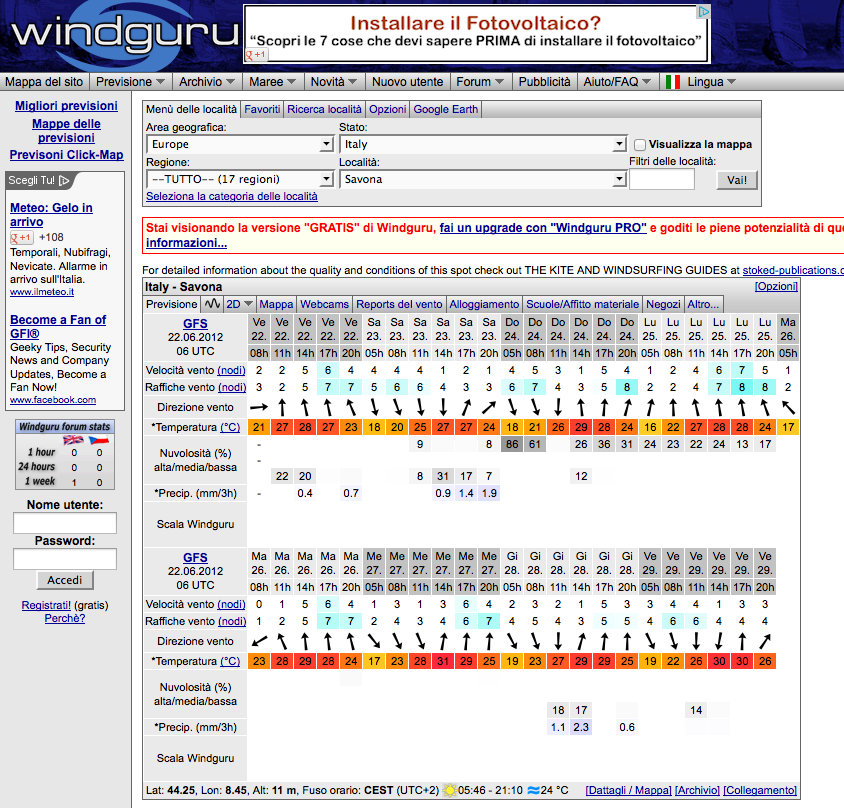 Qui sotto una schermata di Windguru su Savona