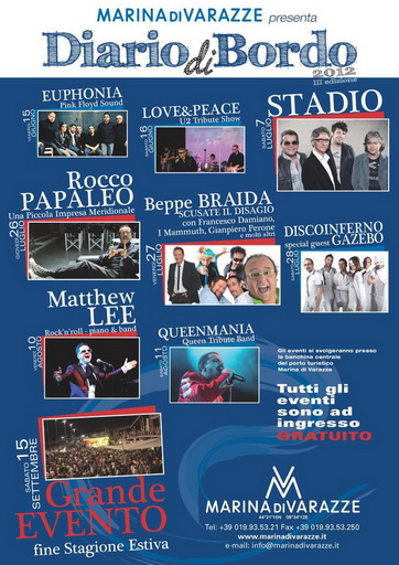 Alle ore 21.30 di sabato 7 luglio appuntamento con una grande serata in banchina a Marina di Varazze con gli “Stadio in concerto”. Evento inserito nel “Diario di Bordo 2012”, nel contesto del progetto “Investire e coinvolgere“, la ricetta anti crisi presentato della Direzione della Marina.