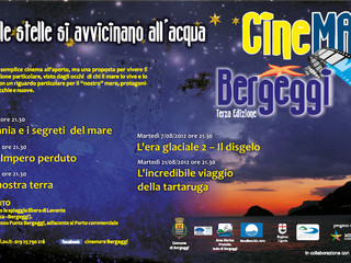 Si inaugura il 17 luglio alle 21,30 l’edizione 2012 di CineMare, la manifestazione organizzata dal Comune di Bergeggi, dall’Area Marina protetta “Isola di Bergeggi”, con il patrocinio del Ministero dell’Ambiente e la collaborazione del Nuovo Filmstudio di Savona. Un’occasione unica per vivere in cinque serate la magia del cinema in uno scenario naturale meraviglioso. Cinque appuntamenti di intrattenimento, sensibilizzazione e divulgazione sulle tematiche della biodiversità e dell’ecosistema marino, trattate attraverso incontri con esperti e proiezioni di documentari, cartoni animati e filmati inediti.