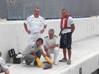 I due uomini della Capitaneria hanno fatto accorrere un gommone che ha recuperato lo squalo e lo ha portato da un biologo che appurerà se è solo stordito o in fin di vita.