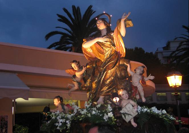 Alle ore 21.00 con l'arrivo della statua della Santa inizierà la processione religiosa presieduta da Mons. Giorgio Brancaleoni, Cappellano d'onore di Sua Santità e Vicario Generale, accompagnata dagli artistici Crocifissi per le vie del centro storico di Laigueglia.