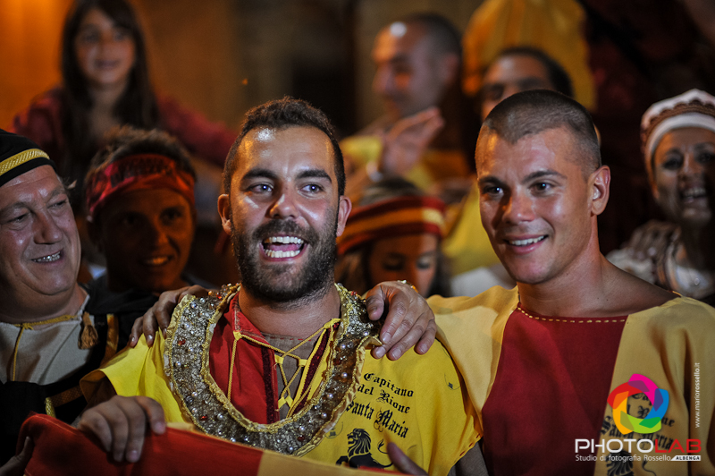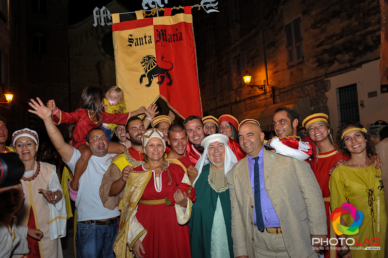 “Una bella vittoria perché sofferta fino all'ultimo, e poi vincere è ancora più bello quando lo si fa contro avversari valorosi: onore e rispetto per gli altri rioni, che ci hanno dato grande filo da torcere”. Sono parole all'insegna del fair play, del rispetto reciproco e della sportività quelle di Vincenzo Nato, capo di Santa Maria, rione vincitore dell'edizione 2012 del Palio Storico dei Rioni di Albenga, manifestazione che – nei giorni 19, 20, 21, 22 Luglio – ha riportato il Centro Storico della Città all'epoca medievale, con spettacoli, giochi, cantine e moltissime altre iniziative, a cura del Comune di Albenga, con la collaborazione delle Associazioni Italia Medievale, La Duecentesca, del CIV L’Isola, dei Rioni Sant’Eulalia, San Giovanni, Santa Maria, San Siro, delle Associazioni Vecchia Albenga, Tra le Torri, Unitre, Fieui di Caruggi, Governo Ombra, VUGA, e con la partecipazione degli sponsor COOP Liguria e Banca Popolare di Novara – Gruppo Banco Popolare.