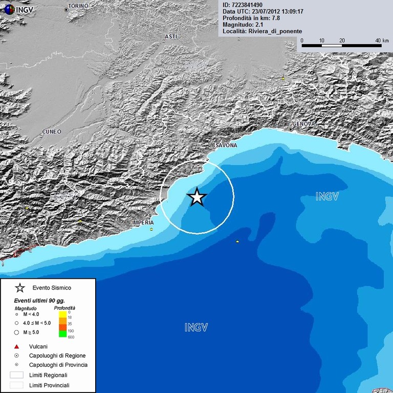 Il terremoto è stato localizzato nella Riviera di ponente. In particolare l'epicentro è stato individuato in mare aperto, nelle acque davanti ad Albenga e a una profondità di 7,8 km