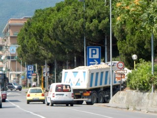 La Verus Srl è certamente tra le imprese più attive in questo periodo, con un notevole viavai di bilici che dal cantiere Maersk di Porto Vado di dirigono a ponente, o vi giungono carichi di materiale che poi viene sversato sul timifo pennellone Maersk, che ha raggiunto ormai nell’omertà più completa, le dimensioni di un bel molo adulto.